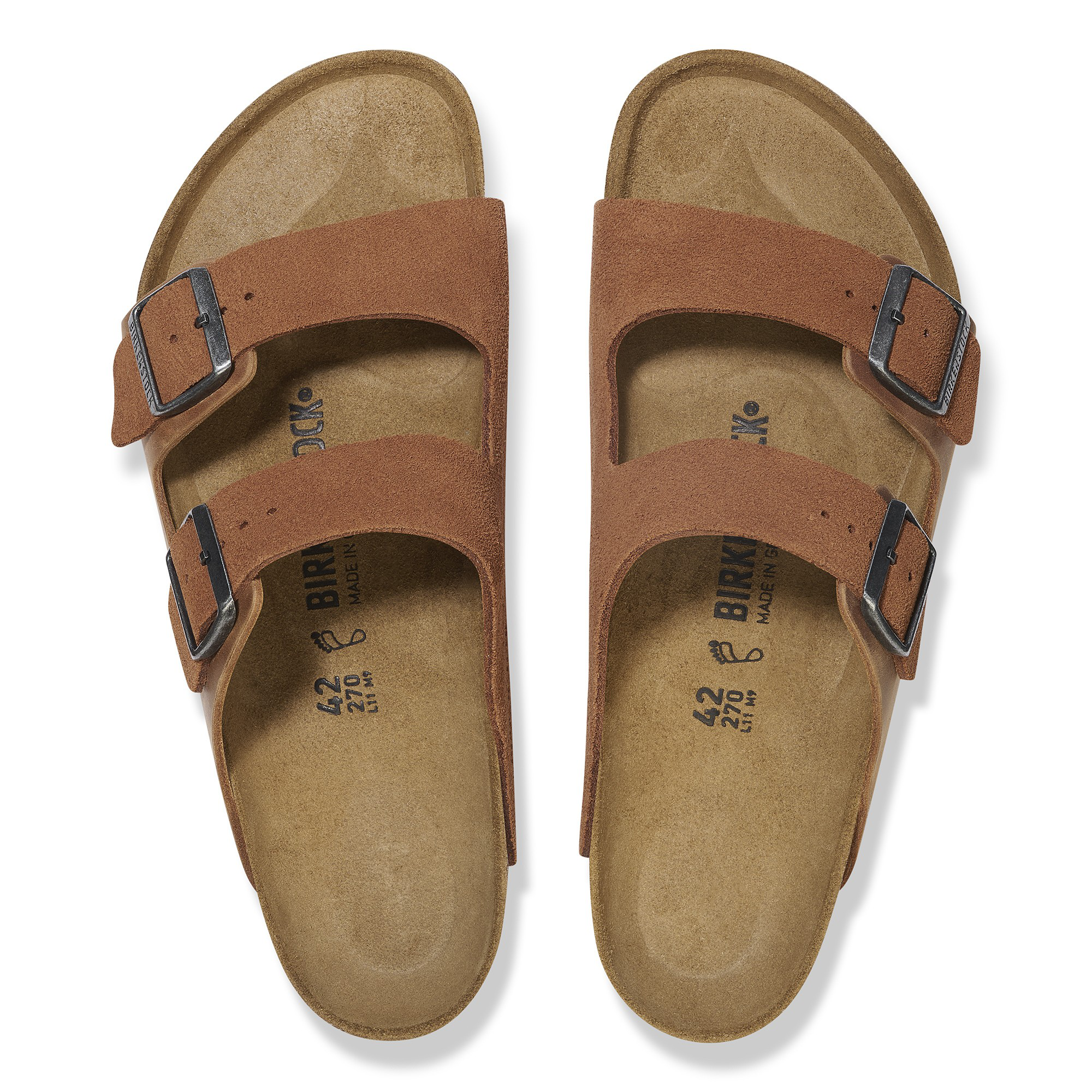 The BIRKENSTOCK Arizona is a genuine classic that has been delighting both men and women for decades. This simple sandal with two straps stands for timeless design and has long held cult status thanks to its comfort factor. The upper is made from especially soft suede which hugs the foot like a second skin. The two straps are made from extra thick, oiled nubuck leather with an open-selvage finish.